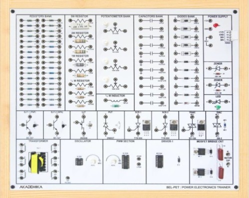 Hands-on platform to study power semiconductor devices, including SCR, TRIAC, DIAC, UJT, MOSFET & BJT. Students perform firing, rectification, PWM motor control, inverter, dimmer, and relay timing applications, building strong fundamentals for AC/DC power conversion.