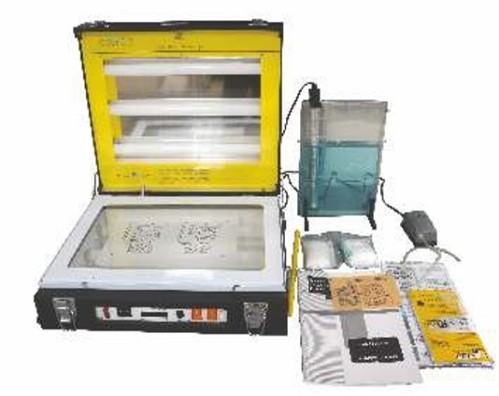 A complete hands-on PCB prototyping setup for engineering students to design and manufacture single-layer PCBs in-house. It includes UV exposure, etching, drilling, and material preparation accessories, enabling quick turnaround from circuit design to working PCB within hours—ideal for practical electronics education and product development fundamentals.